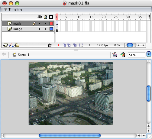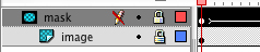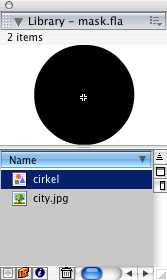 Maak twee lagen aan, de eerste laag bevat je masker, en je noemt deze 'mask'. De tweede laag noem je 'image' en bevat een foto (importeer een afbeelding met het menu: 'File > Import to library').